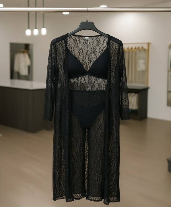 4-Piece Net Lace Nightwear Set – Free Size (Black, Maroon, Grey)